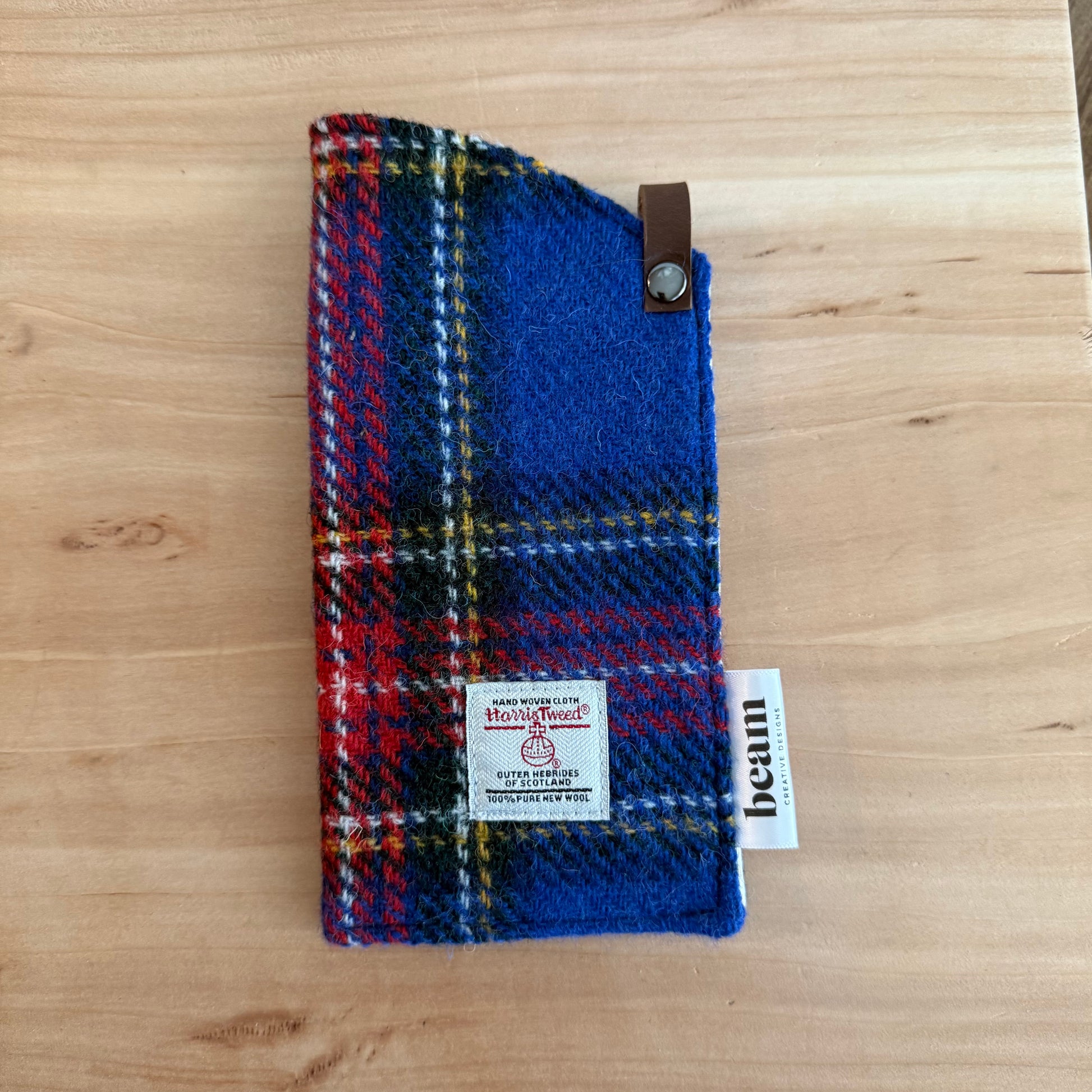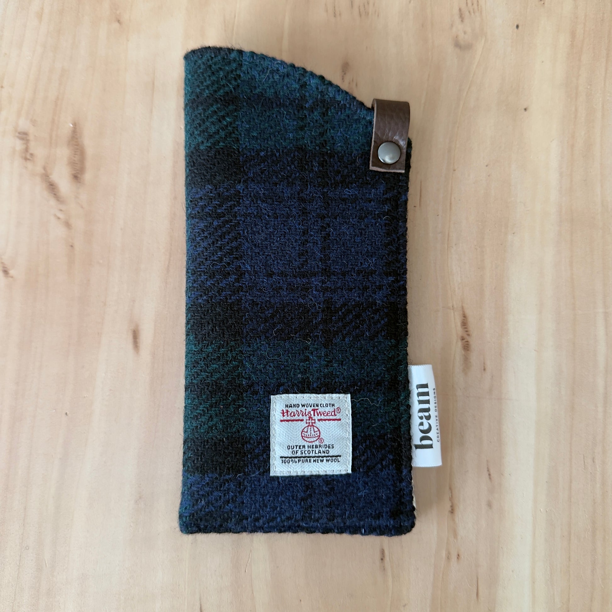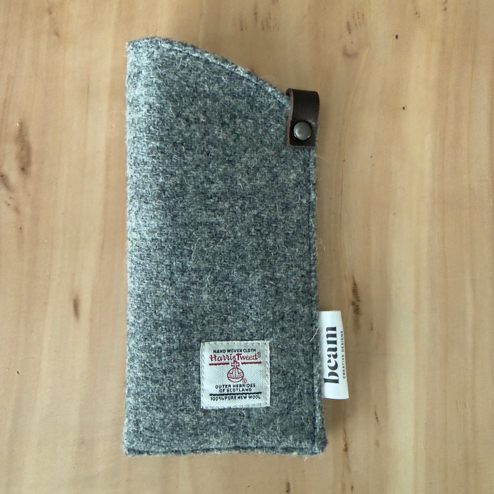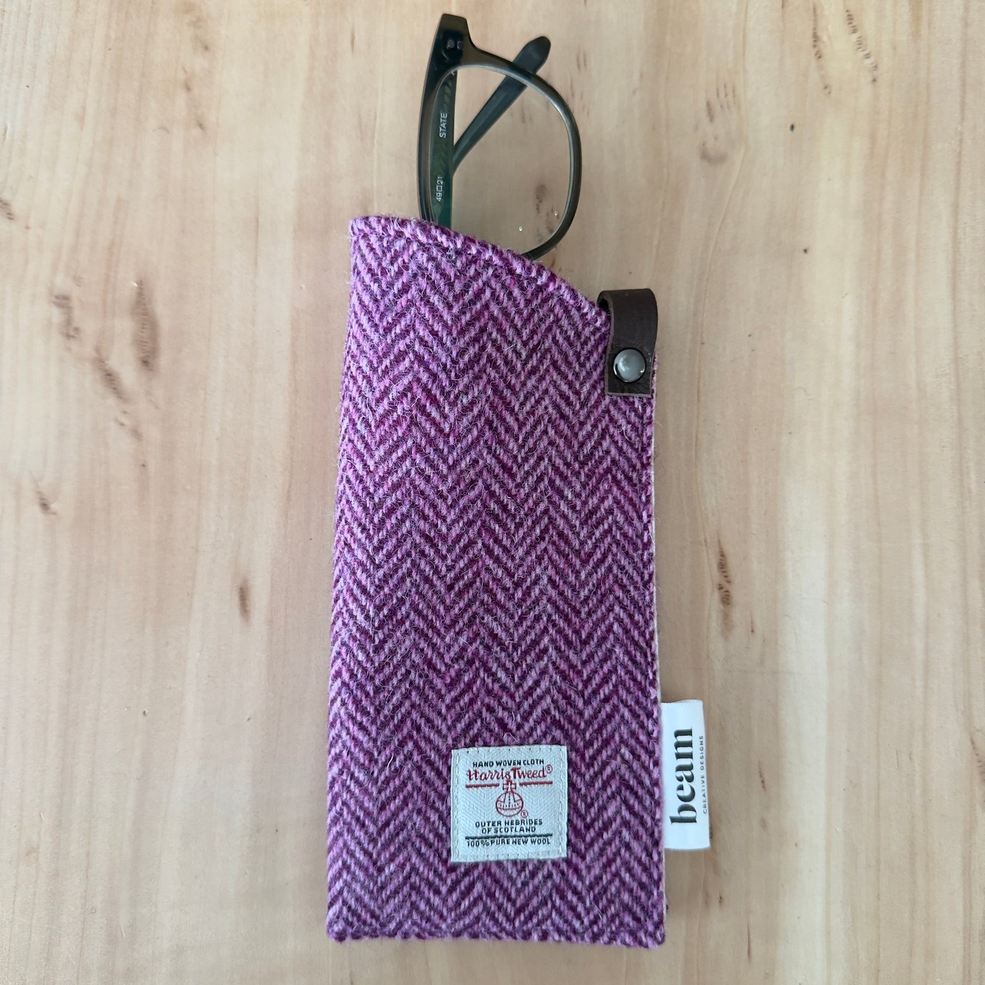 This is the perfect glasses case! Constructed of Harris Tweed and lined with cotton. Has a small leather tab to help grab it out of your bag.